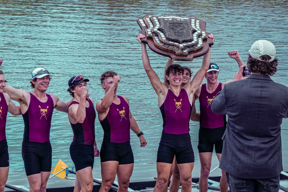 The University of Canterbury (pictured on the left) took out the prestigious Hebberley shield, winning the men's eight.